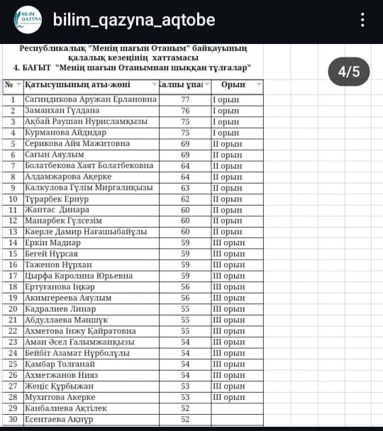 Қазан айының 28-і күні мектебімізде жалпы білім беретін пәндер бойынша 5-6 сынып оқушылары арасында өткізілген мектепішілік пәндік олимпиада нәтижесі: