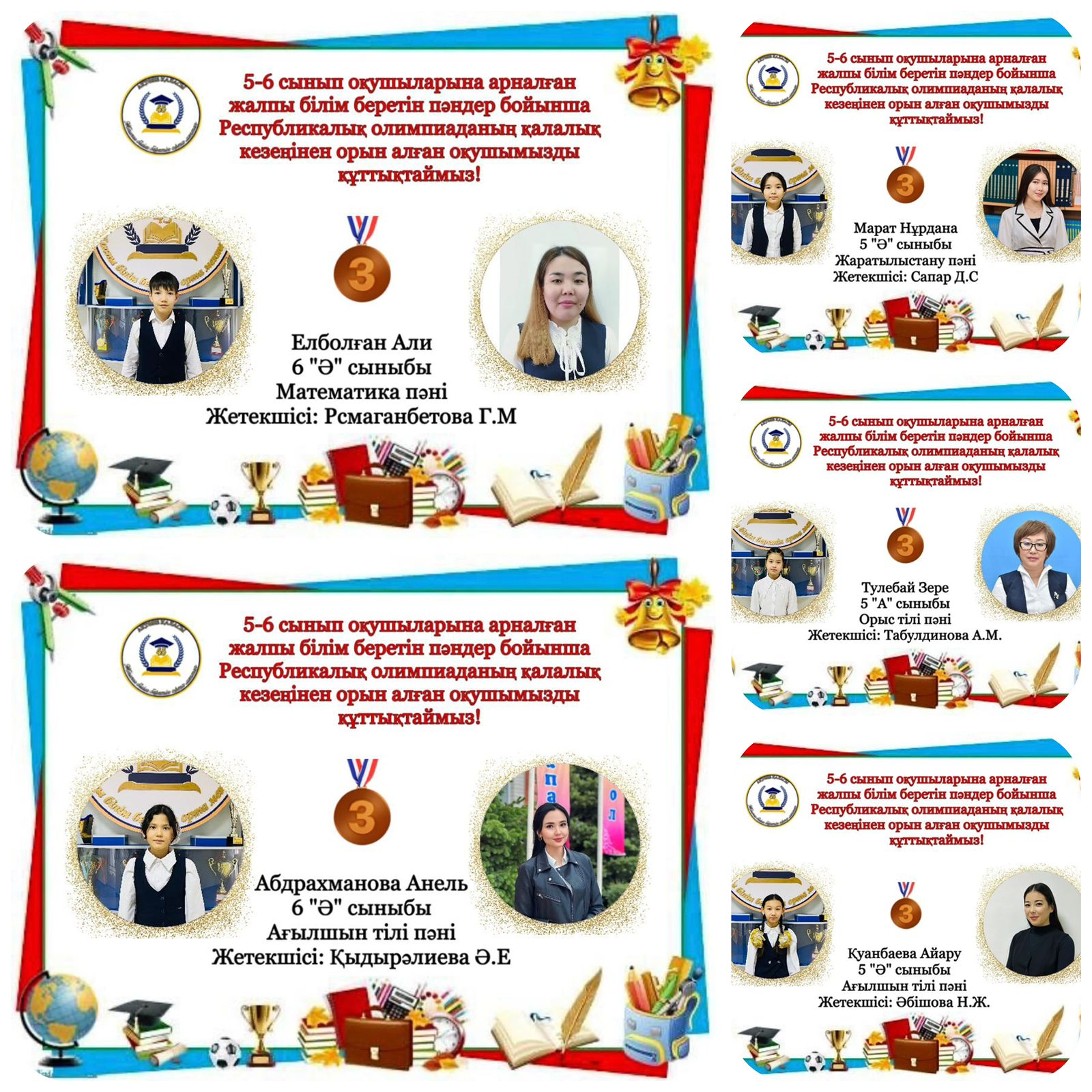 Математика пәні - Елболған Али ІІІ орын, жетекшісі Рсмаганбетова Г.М.