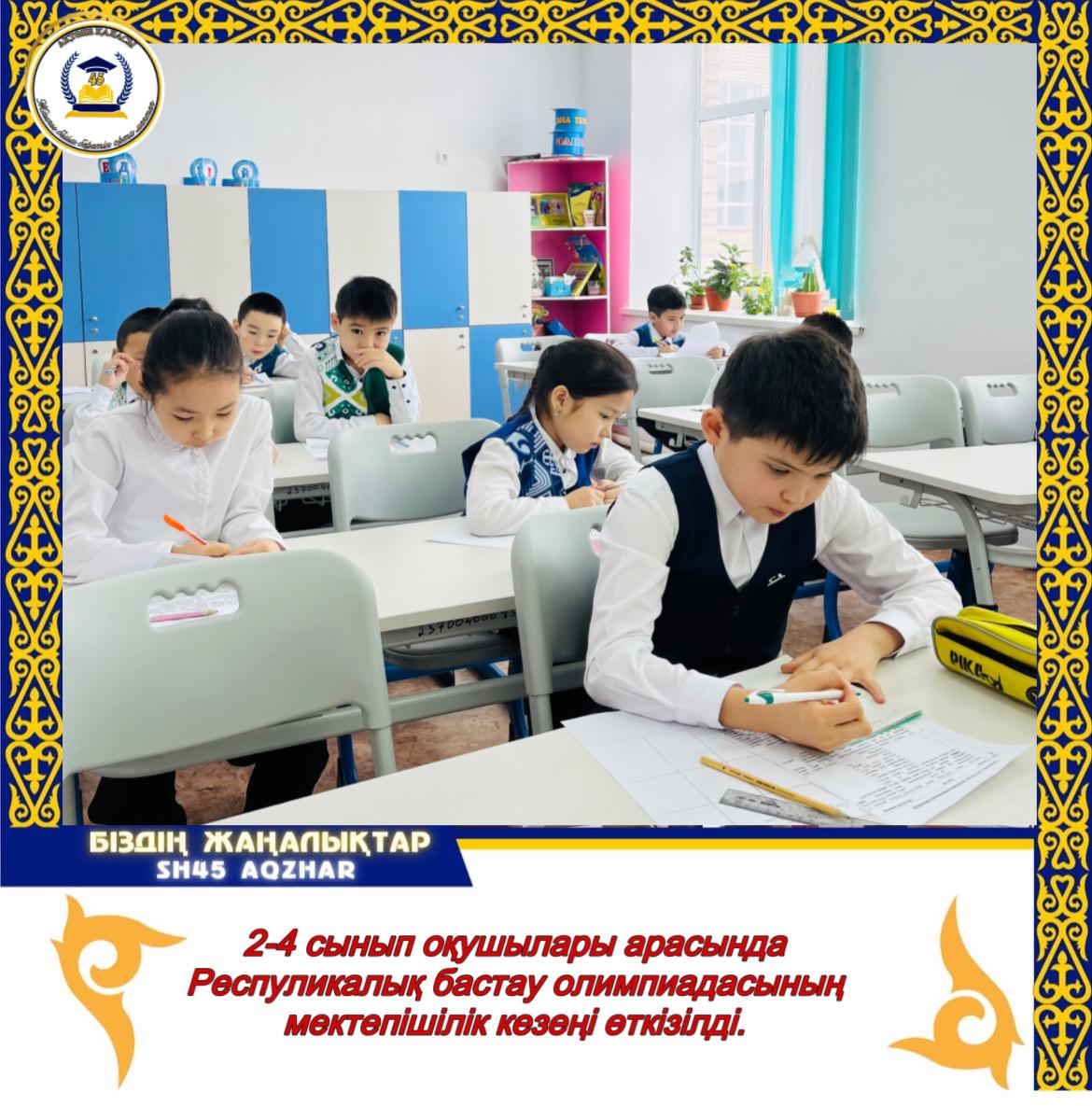 Қаңтар айының 31-і күні мектебімізде 2-4 сынып оқушылары арасында Республикалық “Бастау” олимпиадасының мектепішілік кезеңі өткізілді.