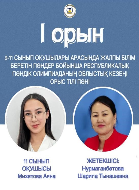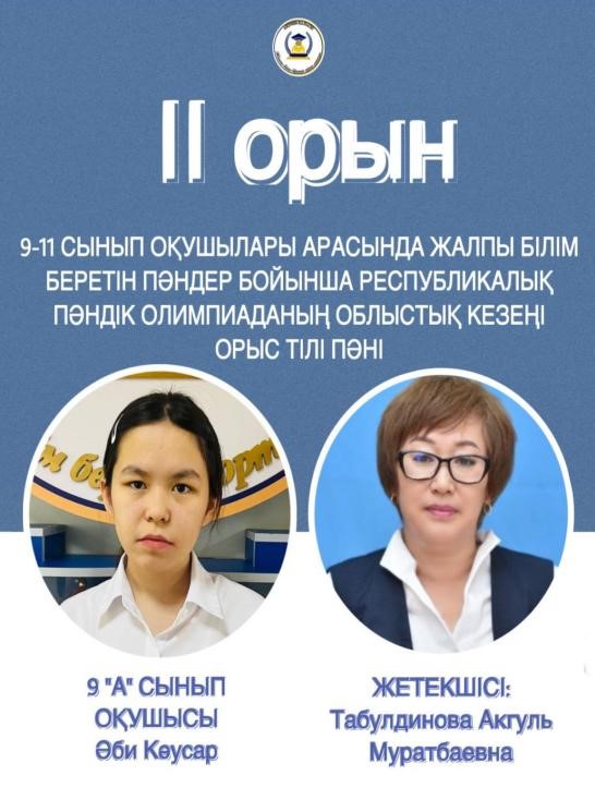 5 А сынып оқушысы Темірбаев Кемелхан ІІ орын, жетекшісі Елдесбаева А.Б.
