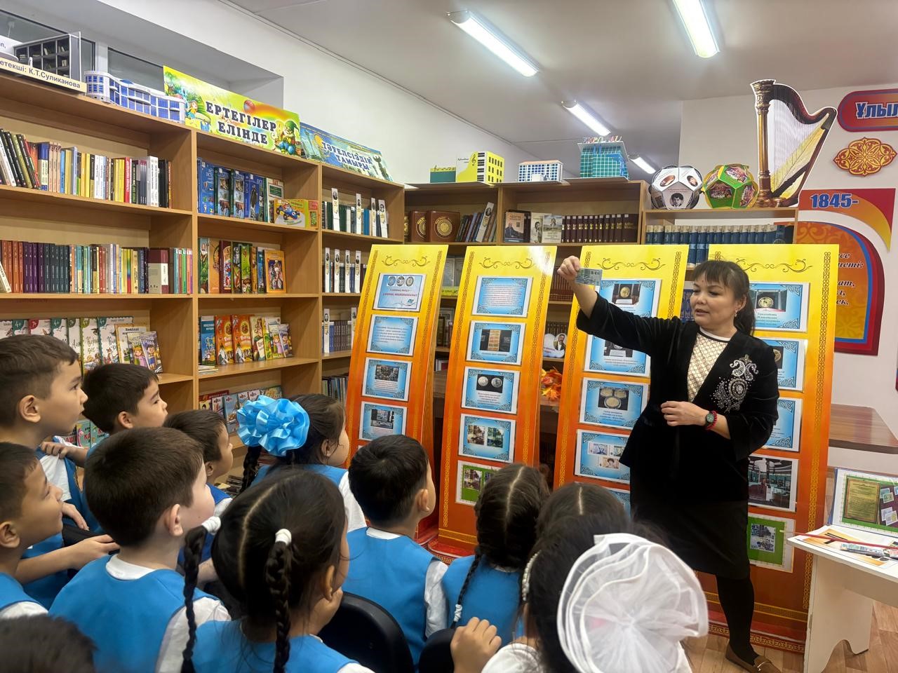 «Теңге Тәуелсіздік Қазақстанның жетістігі» атты библиографиялық шолу көрме. Оқуға құштар мектеп» және «Балалар кітапханасы» бойынша кітапханамызда 1а, 1ә сынып оқушыларына арналған. Көрменің мақсаты кішкентай оқырмандарға ұлттық валюта тарихы, оның маңызы және Қазақстанның басты жетістіктерінің бірі екендігін қарапайым әрі түсінікті түрде таныстыру. Оқушылар теңгенің алғаш айналымға енген күні, банкнотттардың бейнелері және ұлттық рәміз ретінде мәні туралы танысты.