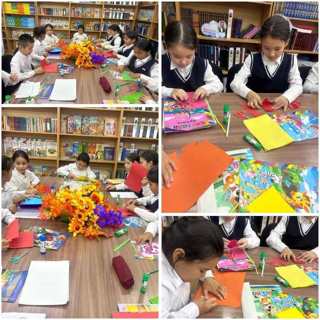 «Балалар кітапханасы» жобасы аясында кітапханада 4а, 4ә сынып оқушылары «Өз қолымен жасалған бетбелгі» досқа сыйлық жасап бір біріне сыйлады. Мақсаты: Досқа өз қолымен жасалған бетбелгі сыйлаудың мақсаты достықты нығайту, жүректен шыққан ықыласты жеткізу, кітап оқуға деген қызығушылығын қолдау және ерекше, бірегей естелік сыйлау. Жан досыма деген кішкентай сыйлық. Шынайы сыйлық жүректен шыққан. Әр бетбелгі шабыт пен махабаттың жемісі. Досыма арналған ерекше. Қолмен жаслған сый. Жүректен шыққан сый досқа арналған бетбелгі.
